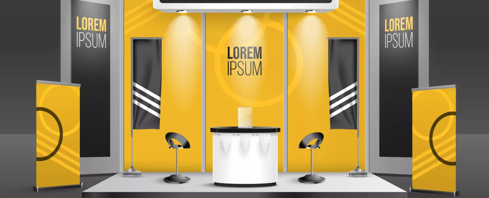 Rollup, X-banner, Beach Flag, Pupitres, Catalogues, Carte de visites, Textiles & Goodies